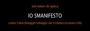 Aderisci all’iniziativa “IO SMANIFESTO”. La proposta del blogger (rionesanità) contro l’attacchinaggio selvaggio che n’chiavica la nostra città. Non votare il candidato che incolla i manifesti illegalmente sui muri dei palazzi, degl’edifici storici, delle chiese, degli ospedali, delle scuole, le piazze, le vie, i vicoli…