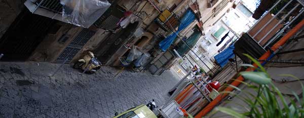 Nel corso del tempo passato nel vicolo Roberta mi ha chiesto più volte di scrivere lettere, un continuo andirivieni di lodi e di ammirazione per un marito che la sorte ha visto sfuggito alle circostanze e al lavoro. “Ancora non arriva, non viene, non esce”, e quindi la scrittura può dare i suoi frutti, scrittura difficile anche per un uomo provato dalla sofferenza e dall’umiliazione. Un giorno mi disse: “sai disegnare?”, in che senso? “Nel senso… sai fare un cuore, un angelo, un uomo e una donna che si tengono per mano?”, no, no, il disegno non è il mio forte! Un disegno può rappresentare meglio la passione che invade il corpo e la mente di Roberta, la passione per un uomo che è troppo lontano, che non si sa quando arriverà, che chi sa cosa sta facendo e se continua ad amarmi. A volte “l’inconscio” ti fa fare cosa strane e quindi potrebbe essere che… Vico Sanfelice è sempre pulito, ad attraversarlo l’odore dei panni appena lavati invade anche le narici più insensibili. È l’odore di Patrizia ex guantaia, è l’odore del falegname che da poco ha aperto, è l’odore del rigattiere sullo scalone centrale di fronte al vicolo, è l’odore dell’ex contrabbandiera di sigarette, è l’odore della famiglia benestante che saluta con cortesia, è l’odore di Michele, un’artista, che parla un italiano perfetto ma discute con tutti e a volte si lascia anche sfottere.