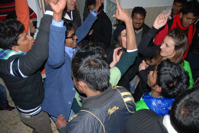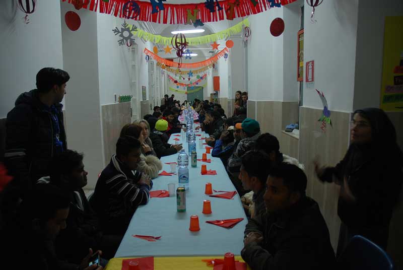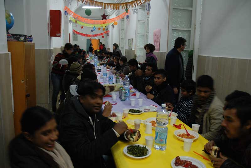 La scuola d’italiano per stranieri chiude per le feste di fine anno. Un po’ di marezza, poi il divertimento, i canti, i balli. Qualcuno non c’era perché lavorava in nero, altri c’erano perché licenziati dal lavoro in nero, anche noi “professori” facciamo il volontariato in nero.