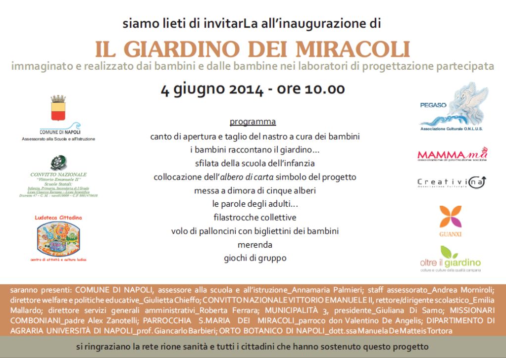 Mercoledì 4 giugno alle ore 10.00 inauguriamo de “il Giardino dei Miracoli”,