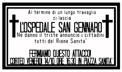 comune di napoli, de magistris, pronto soccorso, regione campania senza partito politico Pubblicato da Antonio Caiafa il 11 Ott 201625 Feb 2017 Unico nello scenario della riforma assistenziale, che nel tentativo di risanare i conti pubblici, ha chiuso definitivamente l’ospedale san GENNARO DEI POVERI. Condividi: Fai clic per condividere su X (Si apre in una nuova finestra) X Fai clic per condividere su Facebook (Si apre in una nuova finestra) Facebook Mi piace Caricamento...