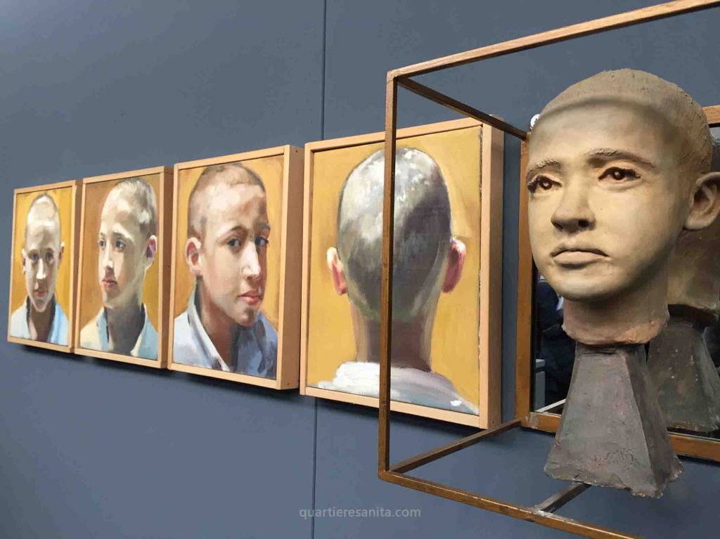 Non sono un esperto di arte, ma l’entrata è bellissima. Le stanze chiaroscure ti portano direttamente di fronte a Caravaggio. Infine, sculture, una stanza bianchissima e in fondo, su di una scalinata, la mostra. Parla il direttore, parla Paolo e la gente applaude. Guardo le raffigurazioni e mi soffermo sul ragazzo ucciso qualche anno fa. La Motta l’ha dipinto e ha fatto diverse sculture, una in piazza Sanità. Genny Cesarano è nato nel palazzo dove ho abitato per più di trent’anni, quello della via santa Maria Antesaecula. Spesso l’ho incontravo per le scale, seduto con qualche ragazzina. Genny era un bel ragazzo, educato. Nessuno ci aveva mai presentato, ma quando mi vedeva mi salutava sempre. Ho già scritto che non mi intendo di arte, ma la statua scolpita da Paolo ha qualcosa di “strano”: il volto, la testa, gli occhi, partecipano vivi nelle mani dell’autore, che l’ha ritratto in diverse prospettive. Di fronte ha il volto di un adulto, così come il profilo di sinistra, quello invece di destra ricorda più un bambino, ricorda più Genny, ma Genny – quand’era vivo – si muoveva da adulto e rideva da bambino. Infine la nuca, la testa arrotondata, ricorda una poesia di Alda Merini: Io ero un uccello dal bianco ventre gentile, qualcuno mi ha tagliato la gola per riderci sopra, non so. Io ero un albatro grande e volteggiavo sui mari. Qualcuno ha fermato il mio viaggio, senza nessuna carità di suono. Ma anche distesa per terra io canto ora per te le mie canzoni d’amore. [+blogger]